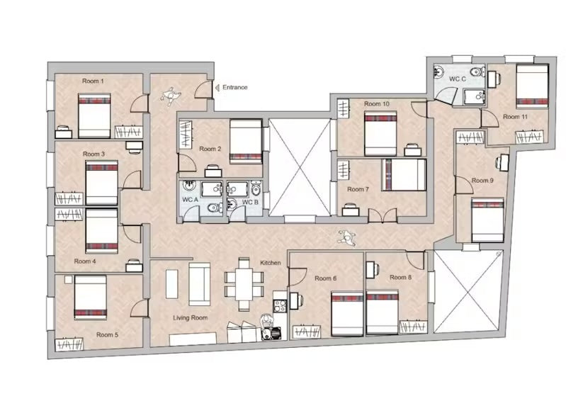 Precioso piso en Preciados Siéntete como en casa en pleno centro de Madrid con este piso situado en Preciados, una calle muy animada, con diferentes terrazas, restaurantes y tiendas. Este piso cuenta con 11 habitaciones, 3 baños completos, cocina totalmente equipada, salón con TV plana y comedor. Es ideal para jóvenes estudiantes y trabajadores que quieran estar en el centro de la ciudad y disfrutar de todo lo que ofrece Madrid. Además, cuenta con buenas conexiones de transporte como las estaciones de metro de Callao, Santo Domingo y Sol. ¡Aprovecha esta oportunidad! Callao es una de las plazas más populares de Madrid. Se encuentra justo en el límite del distrito de los Teatros de Madrid, el popular barrio de Sol en el centro de la ciudad y el hermoso distrito Real de la Ópera. La Plaza Callao es la versión madrileña de Times Square con sus altos edificios, calles concurridas y un bullicio constante. Callao no solo es genial por su ubicación céntrica, sino que es un lugar perfecto para aquellos interesados en el teatro y el cine de España. Durante todo el año hay una gran variedad de obras de teatro, musicales, películas e incluso estrenos especiales de películas. El barrio es una mezcla perfecta entre la arquitectura clásica de los años 20 y la moderna, lo que lo convierte en un gran lugar para explorar. ¡Y no te olvides de las compras! Las calles a lo largo de Callao son algunas de las mejores de la ciudad para ropa, zapatos, maquillaje y tecnología. El piso está ubicado en la calle Preciados y a solo 1 minuto de la Plaza Callao. La zona que rodea el edificio es conocida por sus buenos restaurantes y entretenimiento. Metro: Callao, línea de metro 3, 5. Autobús: varias paradas de autobús en la calle Gran Vía y Jacometrezo (calle detrás del edificio). Cercanías: estación de tren en la Puerta del Sol (7 min andando) - El Corte Inglés (grandes almacenes) - Plaza de Callao - Cines y teatros - Restaurantes y tiendas - No se permiten humos - No se permiten mascotas - Prohibidas las fiestas - Saca la basura a diario - Se permiten visitas de corta duración Habitación amueblada en Preciados Amplia habitación en Preciados, a tan solo un minuto de la Plaza de Callao. Está completamente amueblada con cama de matrimonio (140 cm), armario individual, estantería empotrada y escritorio con lámpara. Además, tiene dos ventanas con vistas al patio interior del edificio. La habitación mide 9,39 m2, tiene cerradura y calefacción eléctrica. *No se incluye ropa de cama, solo se proporciona funda de colchón.*